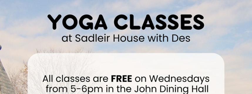 Yoga at Sadleir, held at the historic Sadleir House in Peterborough, Ontario, offers a welcoming and inclusive space for students, community members, and visitors to explore the benefits of yoga and mindful movement. Set in Nogojiwanong, a location rich in Anishnaabe heritage, these classes honor the cultural and spiritual significance of the land while promoting holistic wellness. Led by experienced instructors like Des and Sneha Wadhwani, sessions cater to all levels, from beginners to seasoned practitioners, emphasizing alignment, breathwork, and mental clarity. Classes take place in the John Dining Hall, a bright, open space that fosters a calm and focused environment. Each session blends traditional yoga postures with relaxation techniques to improve flexibility, balance, and overall well-being. Many sessions are offered free of charge, reflecting Sadleir House's commitment to accessibility and community engagement. With an emphasis on mindfulness, connection, and self-care, Yoga at Sadleir has become a beloved local gathering, helping participants cultivate inner peace, reduce stress, and build a supportive community through shared practice.